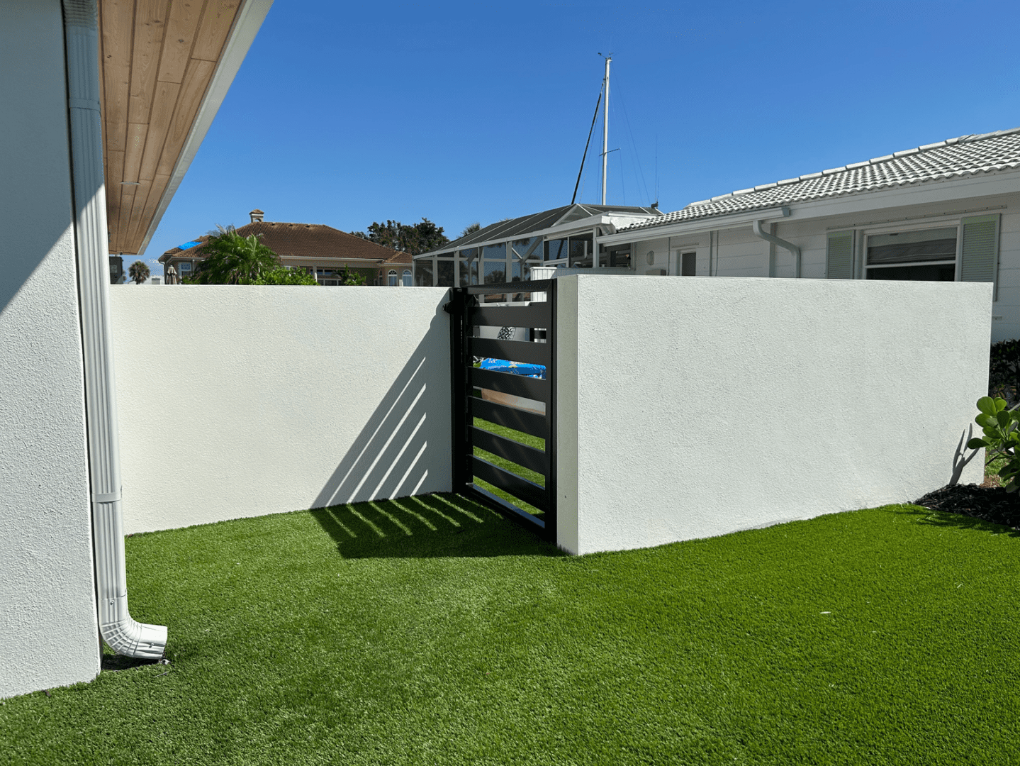 Floridas Foam Walls are not only surprisingly durable, they can also be enhanced with stone, brick, tile, precast stone, entry monuments, and architectural foam. We also install aluminum and wrought iron driveway and pedestrian gates, including electric motorized gates and security entry telephone keypad systems.
